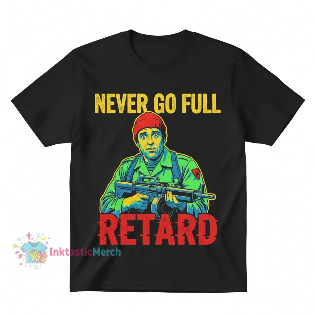 Never Go Full Retard – Tropic Thunder tee is more than just a shirt; it’s a conversation starter. Inspired by the iconic humor and unforgettable moments from the film Tropic Thunder, this design captures a spirit of playful rebellion and unapologetic individuality. It’s for those who appreciate clever references and aren’t afraid to stand out. This artwork is a nod to cinematic wit, crafted for those who love a good laugh and a memorable quote.
