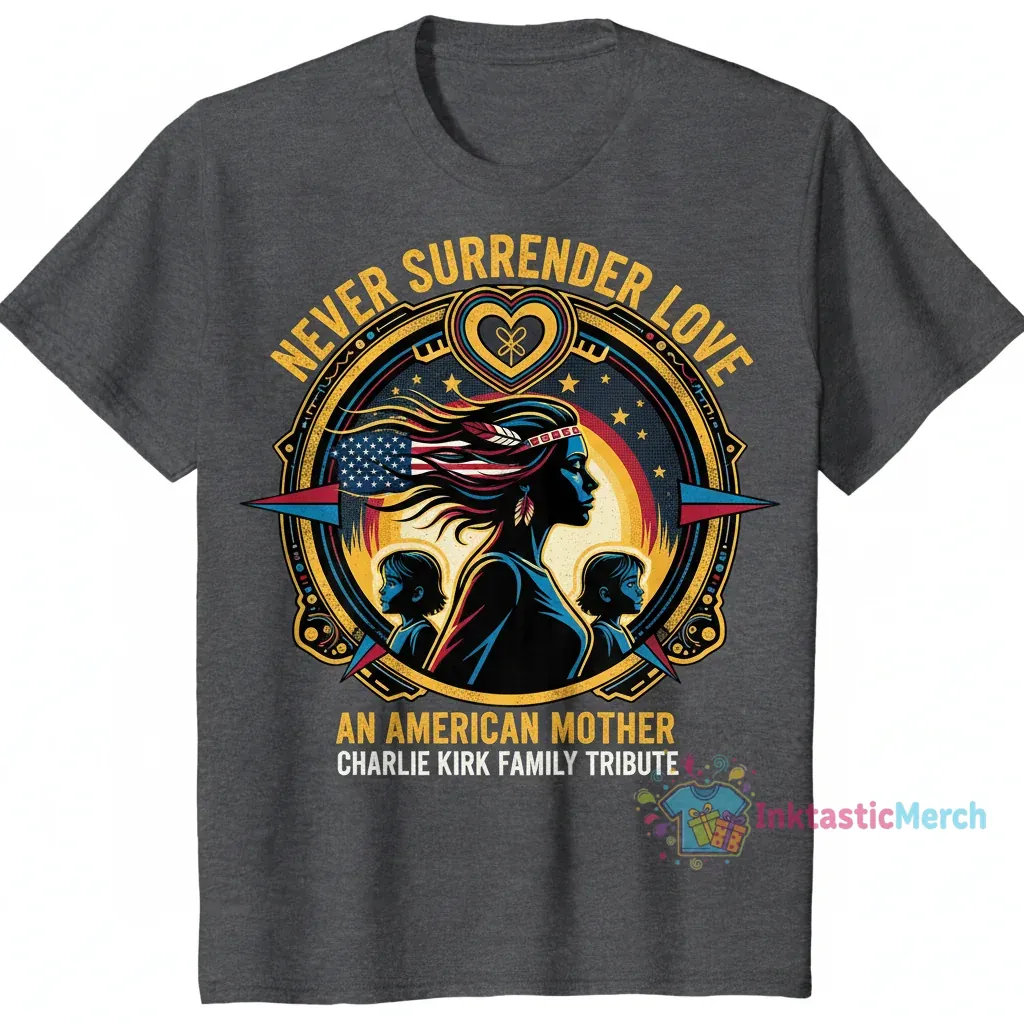 Never surrender love for the unwavering strength and boundless spirit of an American mother. This tribute shirt, inspired by the powerful message championed by Charlie Kirk and his family, celebrates the deep bonds that shape our lives. It’s more than just a shirt; it’s a wearable piece of art that honors the resilience, courage, and enduring love found in every American family. Each design is a heartfelt echo of gratitude, a reminder of the sacrifices made and the love that continues to inspire us all.
