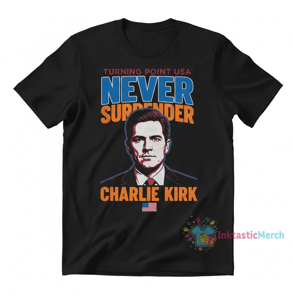 Embrace a modern aesthetic with the “Never Surrender Turning Point USA Charlie Kirk Tee.” This statement piece, perfect for the streetwear enthusiast, blends iconic messaging with a clean, contemporary silhouette. Crafted from premium, ultra-soft fabric by InktasticMerch, this tee offers superior comfort and a durable print, making it an essential upgrade to your casual wardrobe.