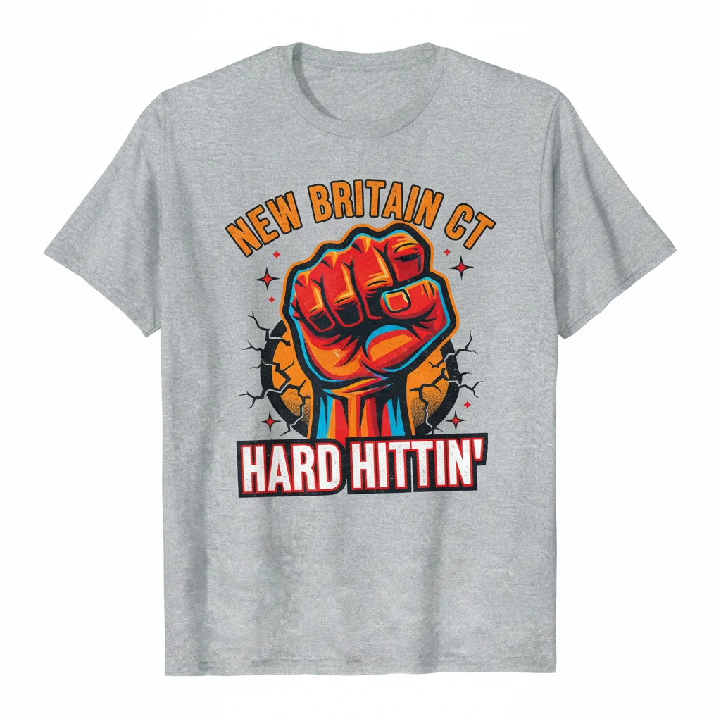 The New Britain CT Hard Hittin Logo Essential T-Shirt is a must-have for anyone looking to showcase their connection to New Britain, Connecticut, with pride and style. This tee features a bold and iconic ‘Hard Hittin’ logo, making it a perfect statement piece for locals, former residents, or fans of the city’s unique spirit. Designed for everyday wear, this shirt combines comfort with urban flair, suitable for various casual occasions. Its direct representation of the original New Britain CT Hard Hittin design ensures authenticity and immediate recognition, making it an excellent gift or personal addition to any wardrobe.