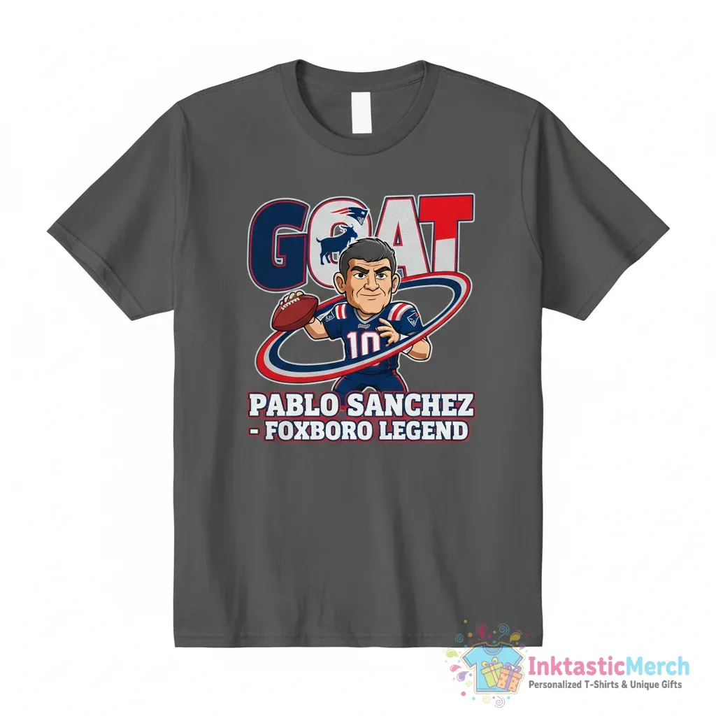 Show your love for the New England Patriots with this awesome GOAT Pablo Sanchez cartoon shirt from InktasticMerch. Made with premium quality materials, this tee is built to last and keep you comfortable all day long, making it the perfect way to stand out and show your team spirit.