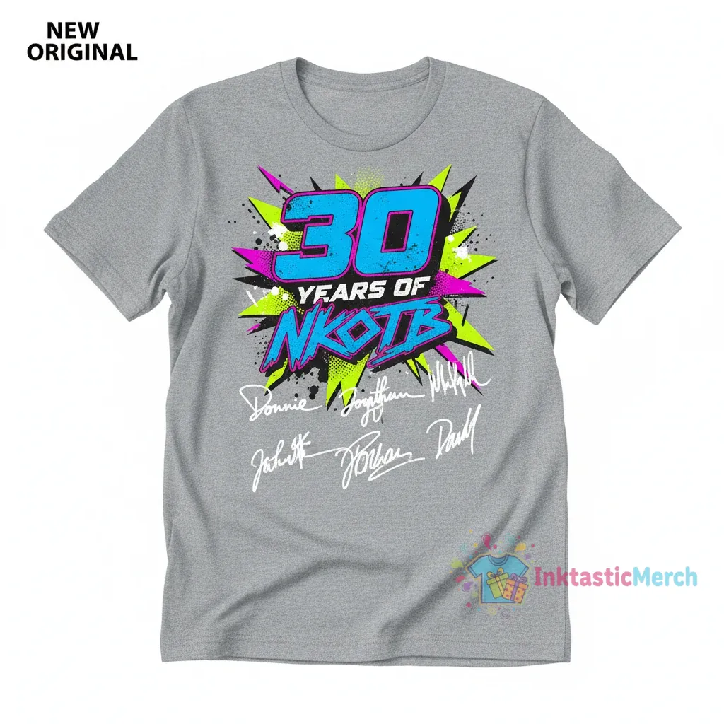 Celebrate three decades of music history with the ultimate 30 Years of NKOTB signatures shirt, a premium collectible for any devoted New Kids On The Block fan. Expertly crafted from 100% ring-spun cotton for exceptional softness and durability, this shirt features authentic reproductions of iconic NKOTB signatures, making it a wearable piece of pop culture history. Discover more quality apparel at inktasticmerch.com.