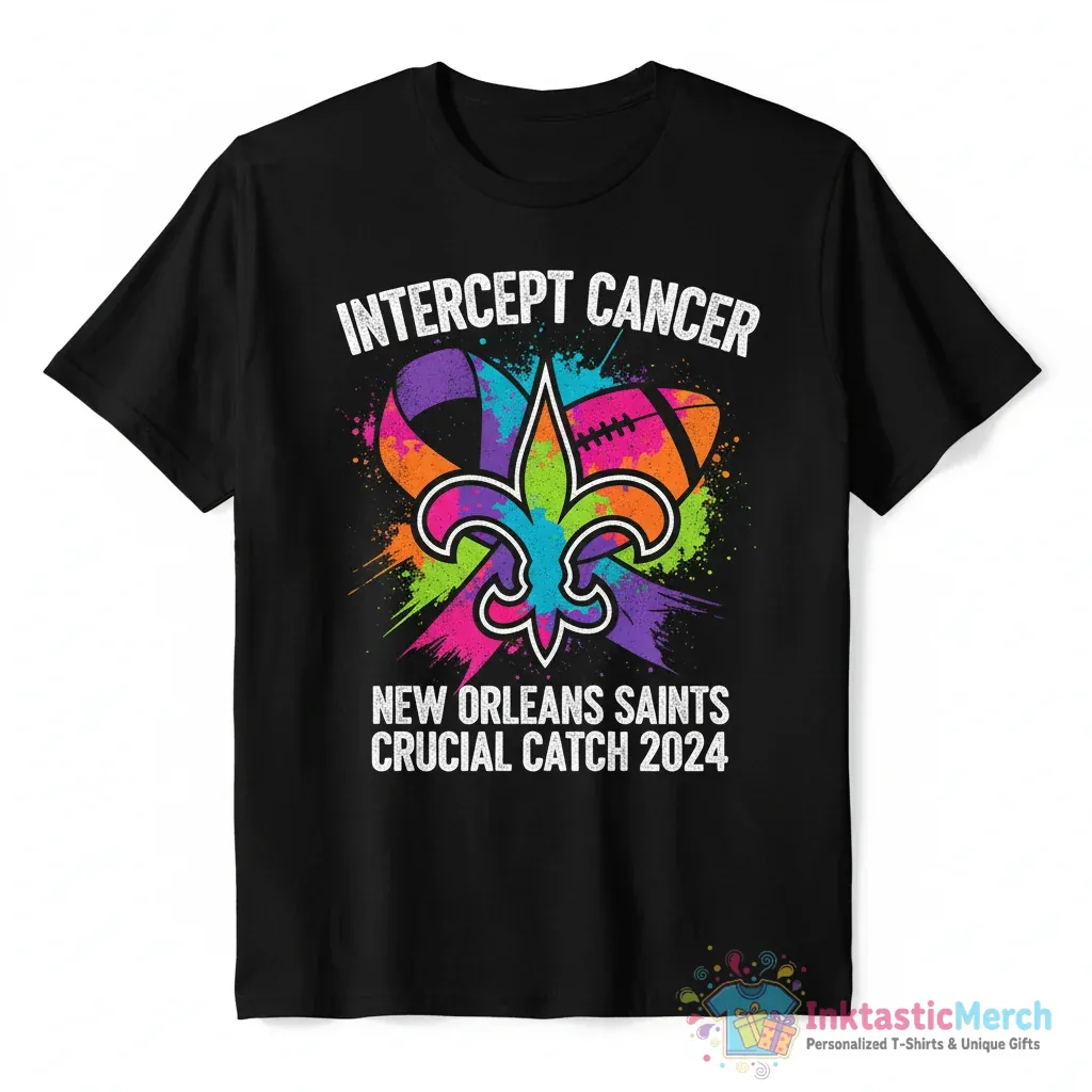 Show your support for the New Orleans Saints and a great cause with the New Orleans Saints Crucial Catch Intercept Cancer NFL 2024 shirt from InktasticMerch. This premium quality tee is designed for true fans, made with incredibly soft fabric for maximum comfort and featuring a durable print that celebrates the Saints and the Crucial Catch initiative. It’s a comfortable, stylish, and impactful way to represent your team and contribute to cancer awareness.