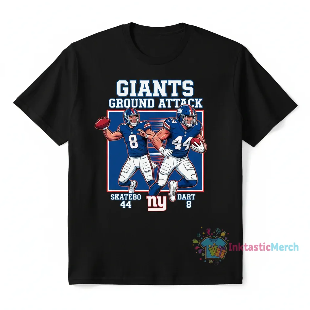 Show your unwavering support for the New York Giants with this exclusive graphic tee featuring fan favorites RB Cam Skattebo (#44) and Jaxson Dart (#8). This isn’t just another shirt; it’s a statement of your dedication, designed to keep you looking sharp whether you’re at the stadium, watching the game with friends, or out and about. Say goodbye to bland fan gear and hello to a top that blends iconic team spirit with modern, stylish design. Get ready to turn heads and celebrate every touchdown in unparalleled comfort and style.