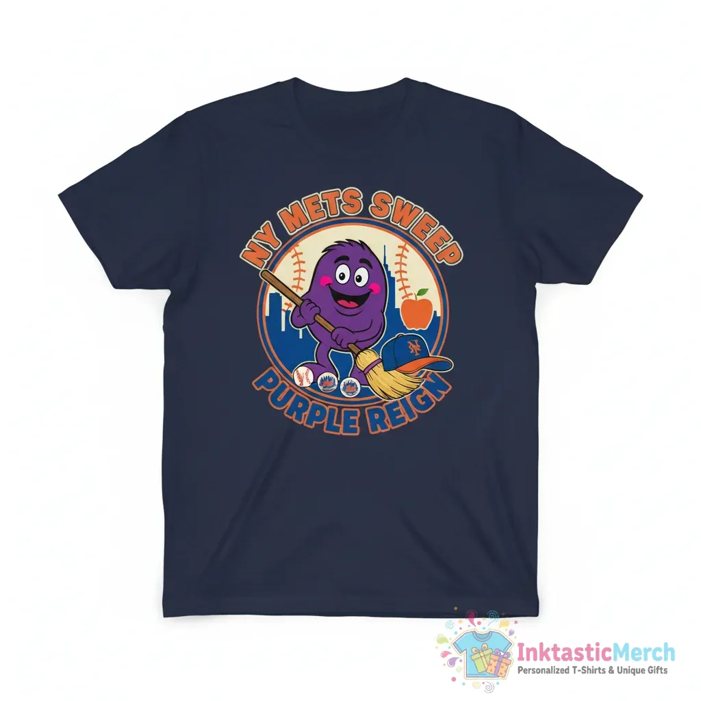 Show your love for the New York Mets and baseball with this unique New York Mets Grimace Sweep baseball lover shirt. This tee is designed for true fans who appreciate both great baseball moments and a touch of fun. Whether you’re heading to the ballpark, watching the game with friends, or just out and about, this shirt lets you wear your team spirit with pride. It’s more than just a T-shirt; it’s a statement of your passion for the Mets and the game.