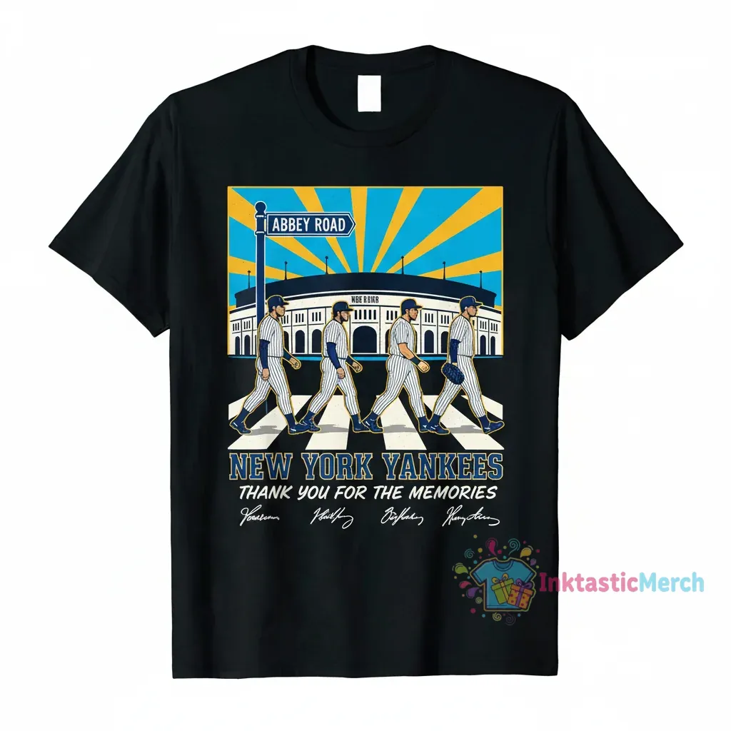 This shirt, inspired by the New York Yankees walking Abbey Road, offers a creative fusion of sports history and legendary music imagery, embodying passion and legacy. Crafted with supersoft, premium fabric, it ensures unparalleled comfort for your daily journey, making it a wardrobe essential from InktasticMerch.
