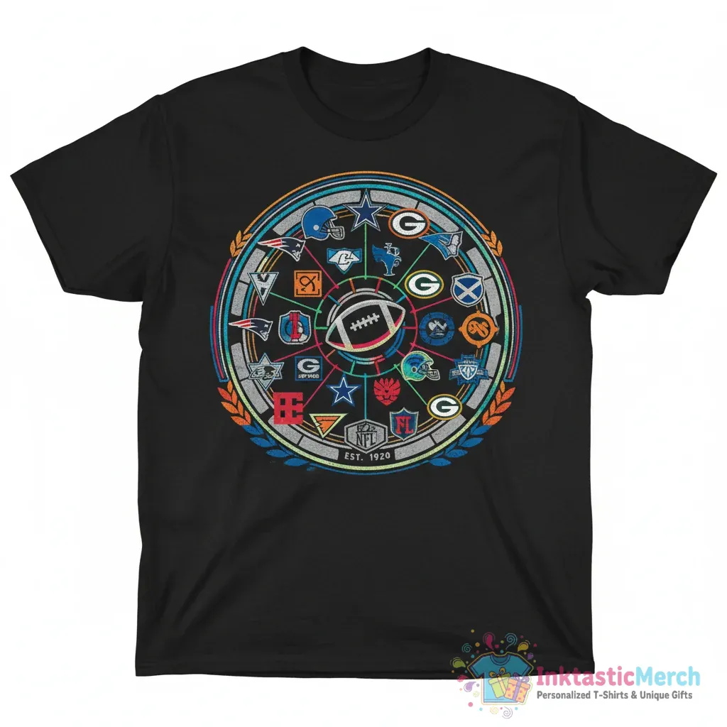 Show your team spirit with this awesome NFL Football logos shirt! Made with ultra-soft, premium quality fabric for maximum comfort and featuring designs from all 32 NFL teams, this tee from <a href="InktasticMerch“>InktasticMerch is a must-have for any football fan, combining style, comfort, and quality for the ultimate football vibe.