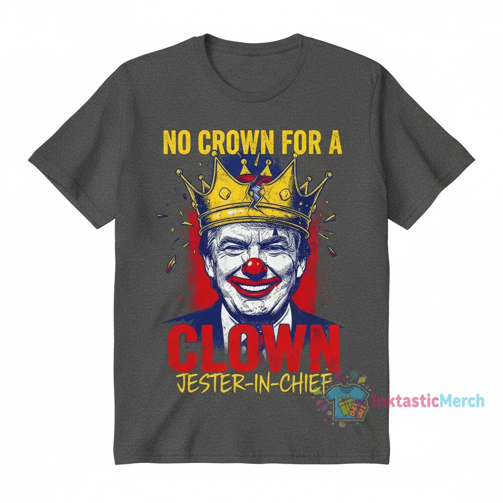 Make a bold statement with the ‘No Crown for a Clown Trump Shirt,’ designed for comfort and impact. Crafted from ultra-soft, premium fabric, this tee offers exceptional comfort for everyday wear while proudly displaying a distinctive, attention-grabbing design. Express your views with humor and boldness, and discover more quality apparel at inktasticmerch.com.