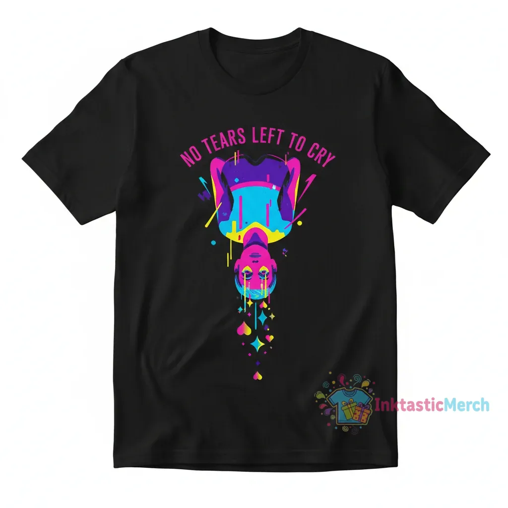 Immerse yourself in the powerful artistry of this tee, inspired by the iconic “No Tears Left To Cry” anthem. The design artfully blends symbolic imagery with a modern aesthetic, reflecting a journey from sorrow to strength. It’s more than just a graphic; it’s a visual narrative of overcoming challenges and embracing a brighter future. The artwork evokes a sense of hope and determination, making it a powerful statement piece that resonates with personal growth and emotional freedom. Feel the positive energy and the spirit of resilience woven into every detail of this unique illustration.