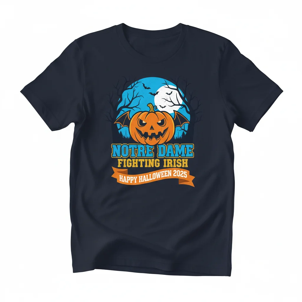 Celebrate your team spirit this spooky season with the official Notre Dame Fighting Irish Happy Halloween 2025 poster shirt, a unique and festive piece of fan apparel. This graphic tee features a bold, poster-style design that perfectly merges your Fighting Irish pride with the fun of Halloween. It’s an ideal choice for attending campus events, Halloween parties, or simply showcasing your loyalty throughout the autumn season. The vibrant, high-quality print captures the festive spirit, making this t-shirt a standout collector’s item for any dedicated fan. Whether you’re in the stands or on the streets, this shirt ensures you represent Notre Dame with distinctive and timely style.