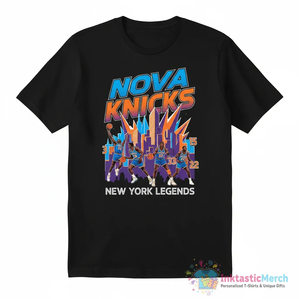 Show your pride for the New York Knicks with the Nova Knicks basketball legends NBA shirt. Crafted from ultra-soft, premium material and featuring a vibrant, high-quality print, this tee offers both exceptional comfort and lasting style. Celebrate the team’s storied past and iconic players with this must-have fan gear, available from InktasticMerch.