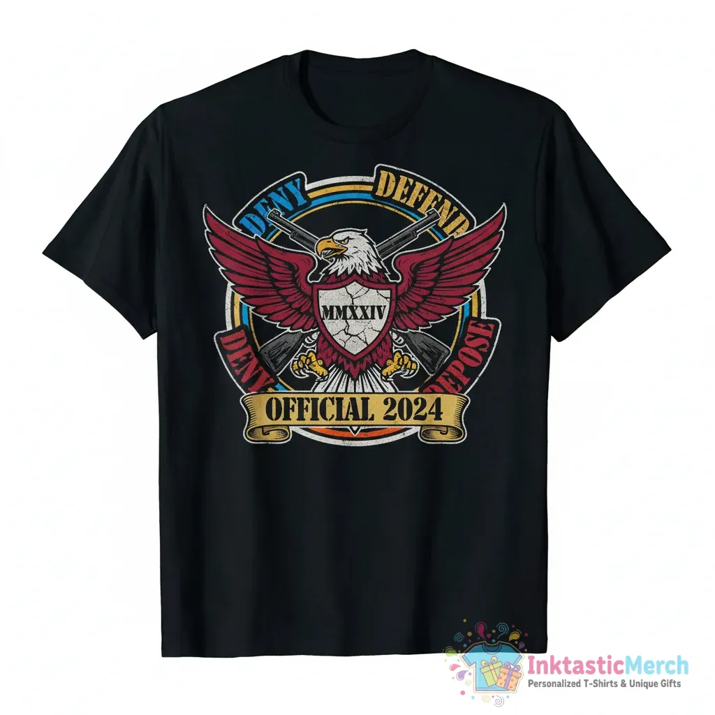 Show your stance with the Official 2024 Deny Defend Depose shirt, a premium quality tee designed for those who stand firm in their beliefs. Made from high-quality fabric for ultimate comfort, this shirt from InktasticMerch features a striking graphic that lets you express your message with confidence and style.