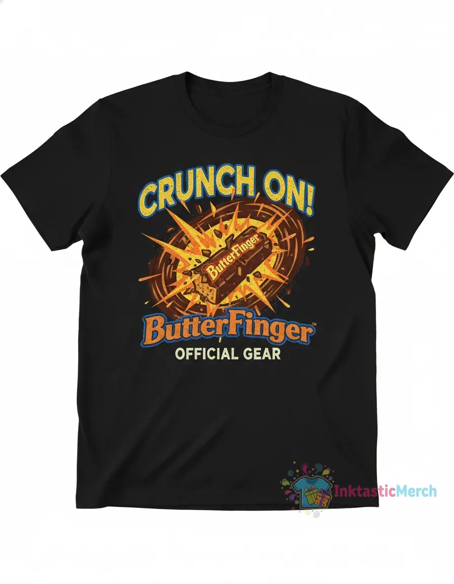 Tired of flimsy tees that lose their shape and vibrancy? Upgrade your style with the Official Butterfinger T-Shirt, a statement piece crafted from 100% premium, pre-shrunk cotton for unparalleled comfort and a consistently perfect fit. This durable tee features vibrant, eco-friendly inks designed to resist fading, ensuring you can show your love for Butterfinger with a shirt that truly lasts. Explore more quality apparel at inktasticmerch.com.