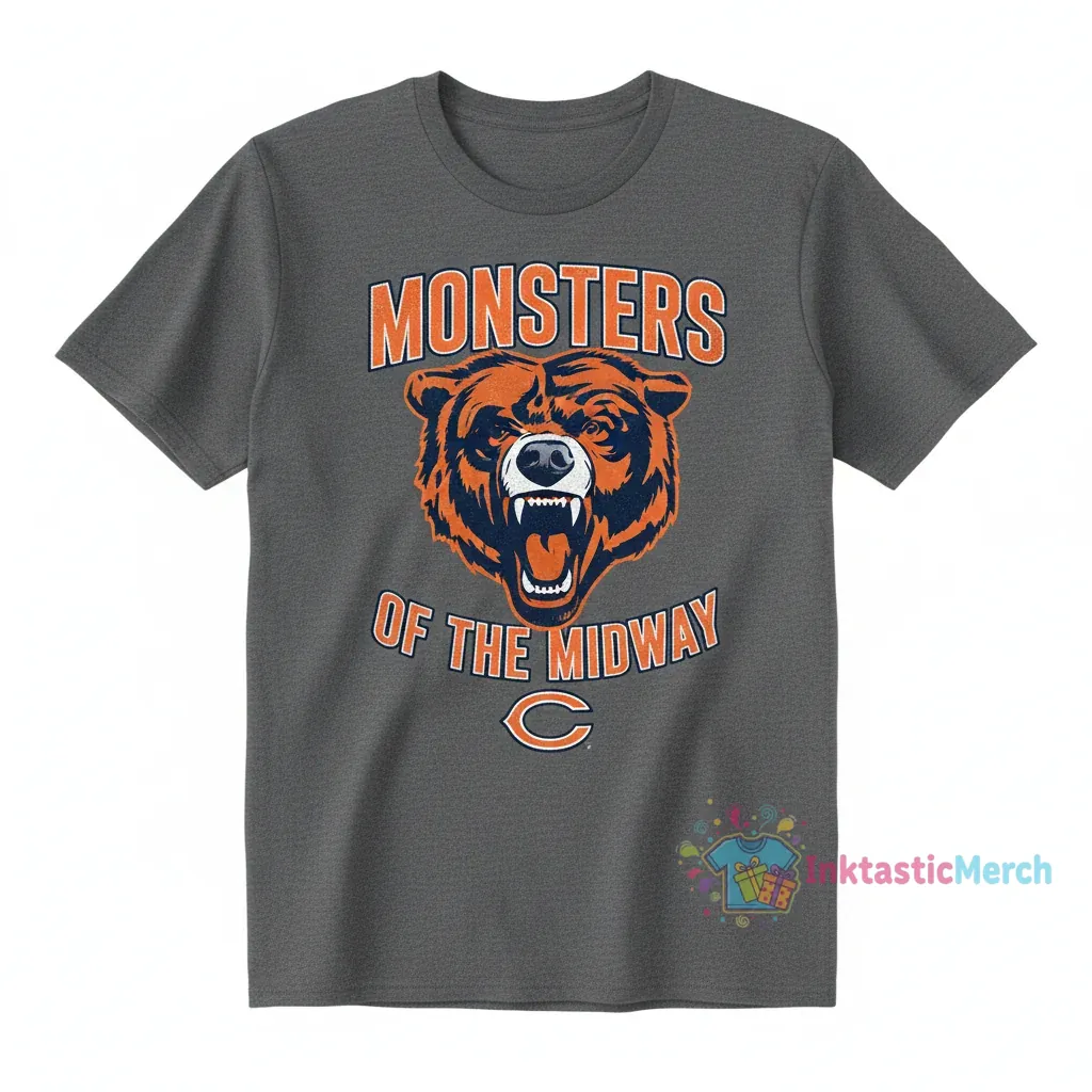Show your unwavering support for the Chicago Bears with the official Monsters of the Midway shirt, engineered for maximum comfort and durability from premium, pre-shrunk 100% ringspun cotton. Printed with vibrant, eco-friendly inks that resist fading, this t-shirt offers a perfectly tailored unisex silhouette for a flattering look, ensuring your fan status endures. Discover more high-quality fan gear at inktasticmerch.com.
