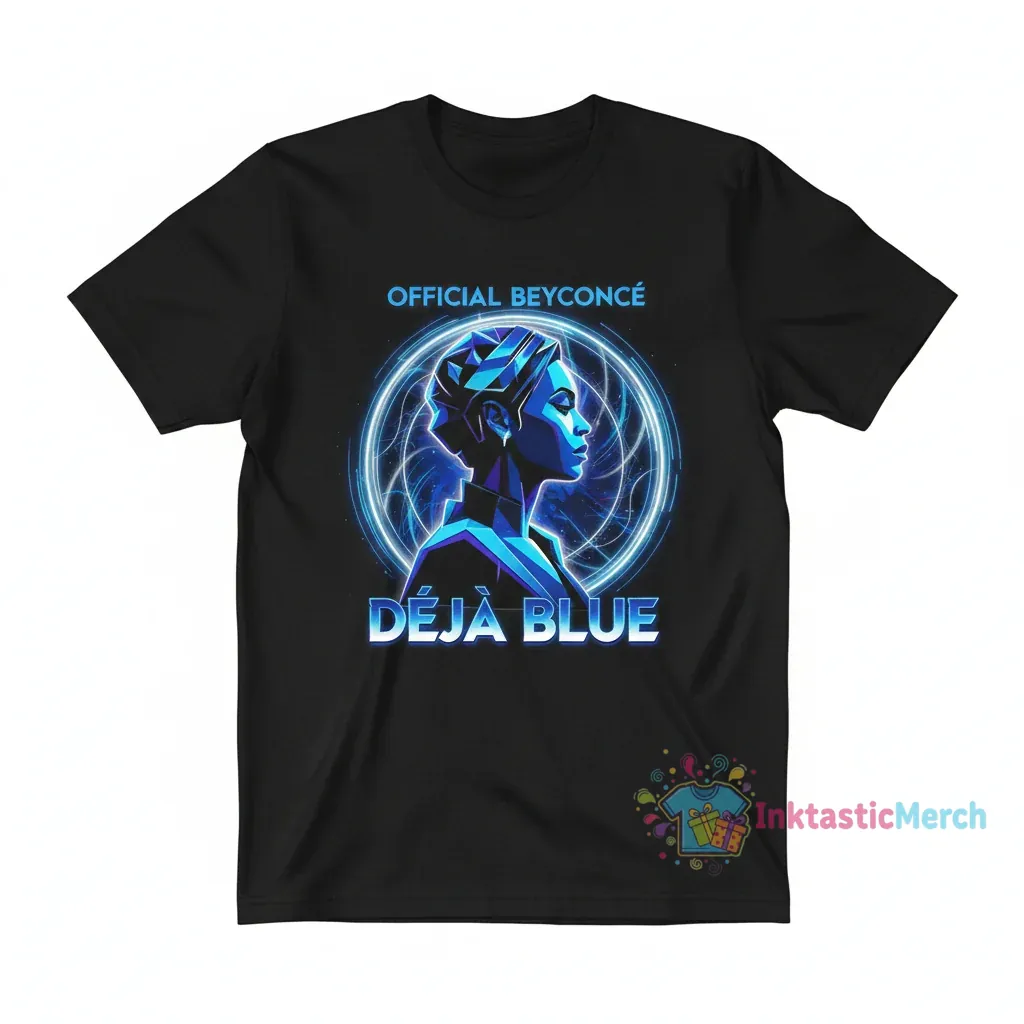 Show your love for Queen Bey with the Official Deja Blue Beyoncé T-Shirt, a standout piece of merchandise crafted from 100% ring-spun cotton for superior softness and breathability. This tee celebrates the legendary ‘Deja Blue’ aesthetic with a high-quality, long-lasting print and meticulous construction, ensuring a modern retail fit and durability, available at inktasticmerch.com.