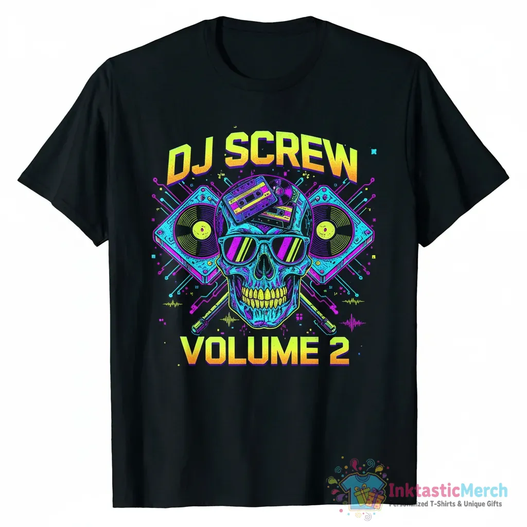 Show off your love for iconic hip-hop with the Official DJ Screw Volume 2 Skull Cut T-Shirt from InktasticMerch. This premium tee features striking skull artwork inspired by the legendary DJ Screw’s Volume 2, offering a comfortable and stylish way to represent a pivotal figure in Southern hip-hop culture. Crafted from exceptionally soft, premium quality fabric with a durable construction, this shirt ensures lasting comfort and iconic style for any fan.