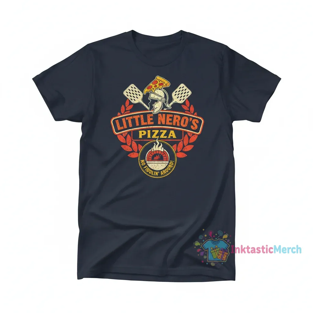 - High-Quality Print: Features a vibrant and durable print of the Little Nero’s Pizza logo and “No Fiddlin’ Around” text.
