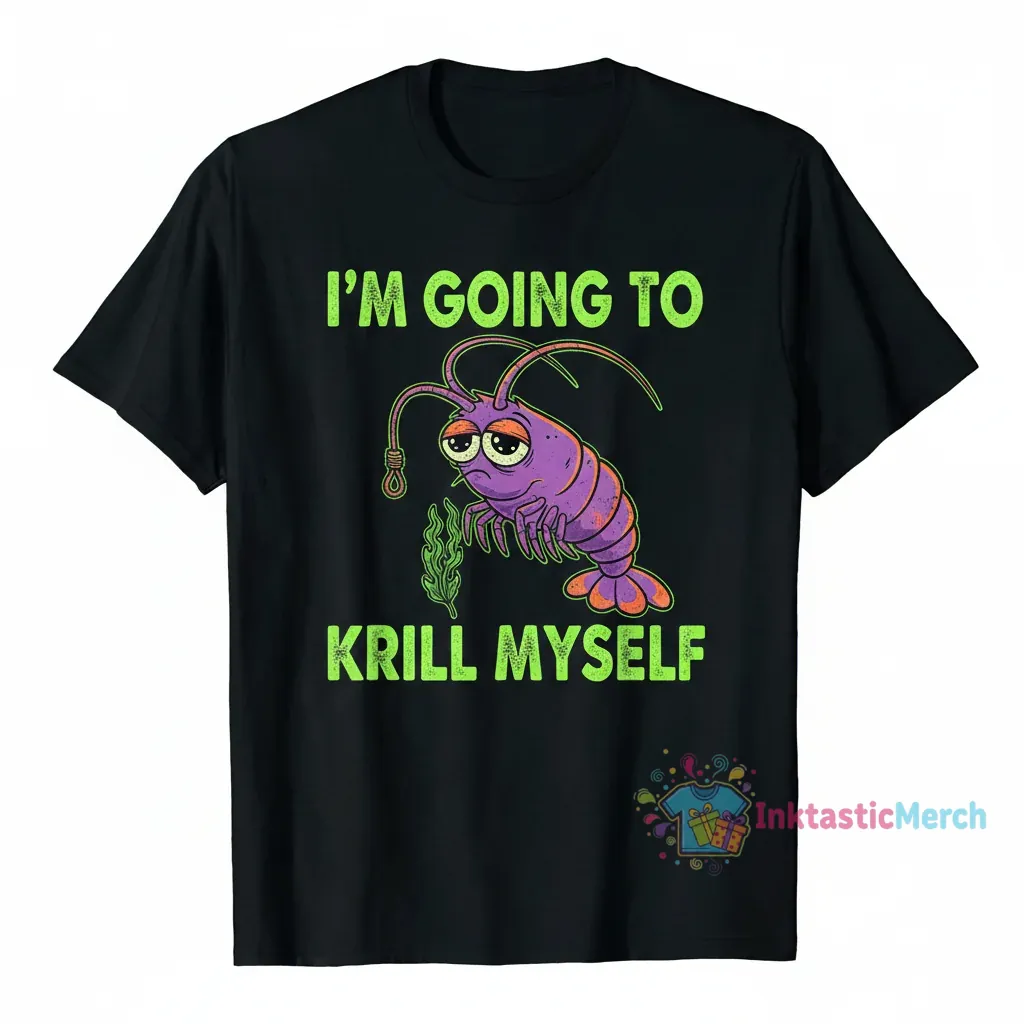 Make a bold statement with the Official I’m going to Krill Myself shirt from InktasticMerch, featuring a darkly humorous and visually striking design that captures a unique sense of existential wit. Crafted from a soft, breathable cotton blend, this shirt ensures ultimate comfort for all-day wear, making it perfect for those who appreciate unconventional art and everyday ease.