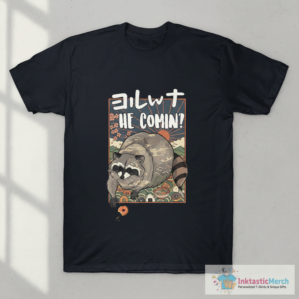Bring your style to life with the Oh Lawd He Comin’ Thicc Racoon T-Shirt today!