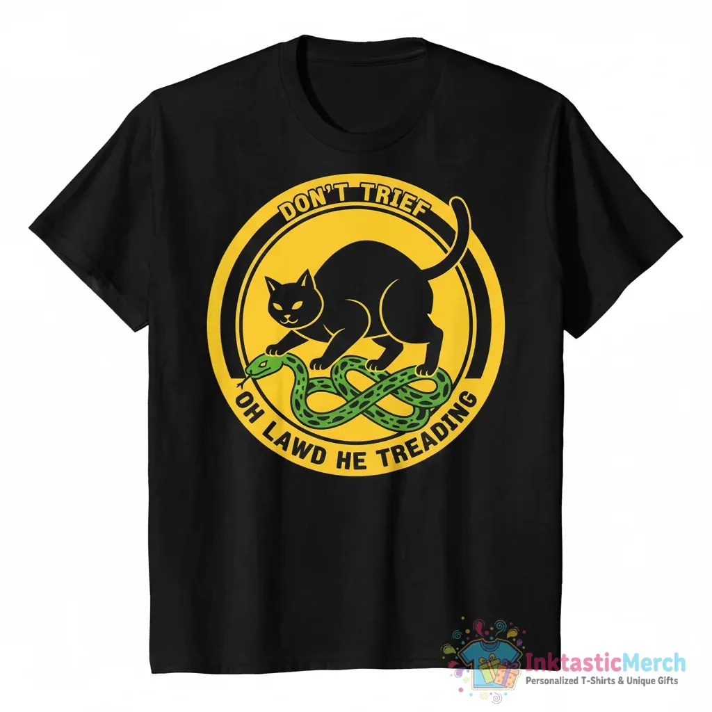 Unleash your inner meme lord with the Chonky Cat Gadsden Flag Parody T-Shirt! This hilarious tee puts a fun, feline twist on the iconic “Don’t Tread on Me” flag. Featuring a wonderfully plump cat ready to defend its honor (or maybe just its nap spot), this shirt is a must-have for anyone who loves cats, memes, and a good laugh. It’s the perfect way to show off your unique sense of humor and your appreciation for all things chonky. Get ready to turn heads and spark conversations with this instantly recognizable and endlessly amusing design.