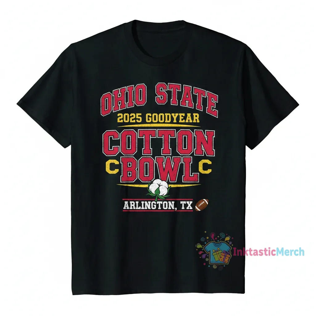 Rep the Buckeyes with iconic style in this 2025 Goodyear Cotton Bowl tee from InktasticMerch. Crafted from a premium, ultra-soft fabric, it offers unparalleled comfort and a modern, relaxed fit that blends classic team pride with a fresh, streetwear-ready vibe. This tee is more than just a shirt; it’s a statement designed to last.