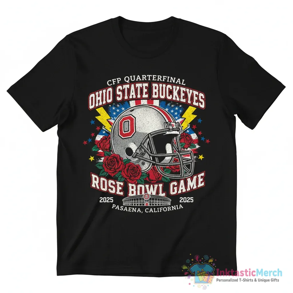 Bring your style to life with the Ohio State Buckeyes CFP Quarterfinal at the Rose Bowl Game 2025 shirt today!