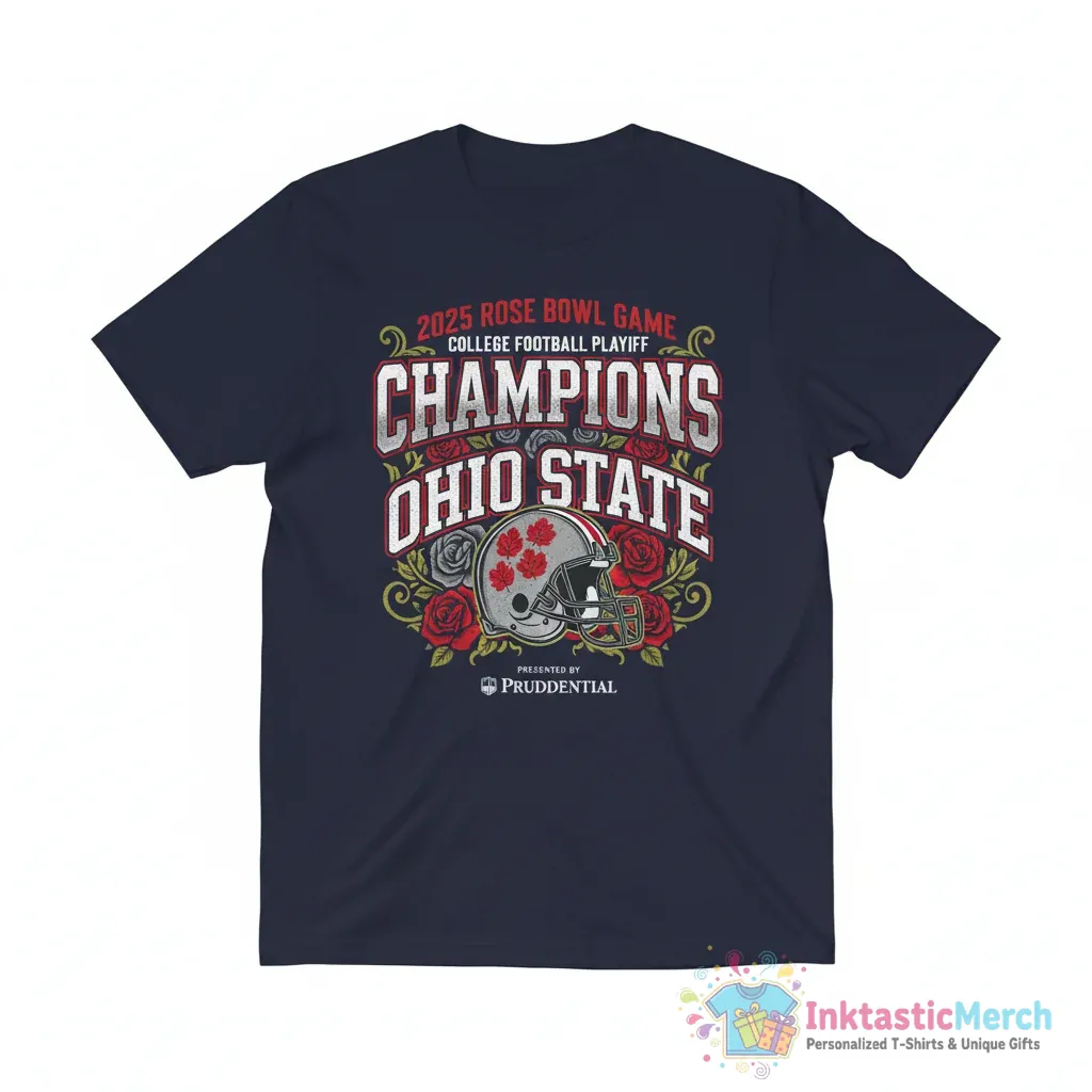 Bring your style to life with the Ohio State Buckeyes College Football Playoff at the 2025 Rose Bowl Champions Presented by Prudential shirt today!