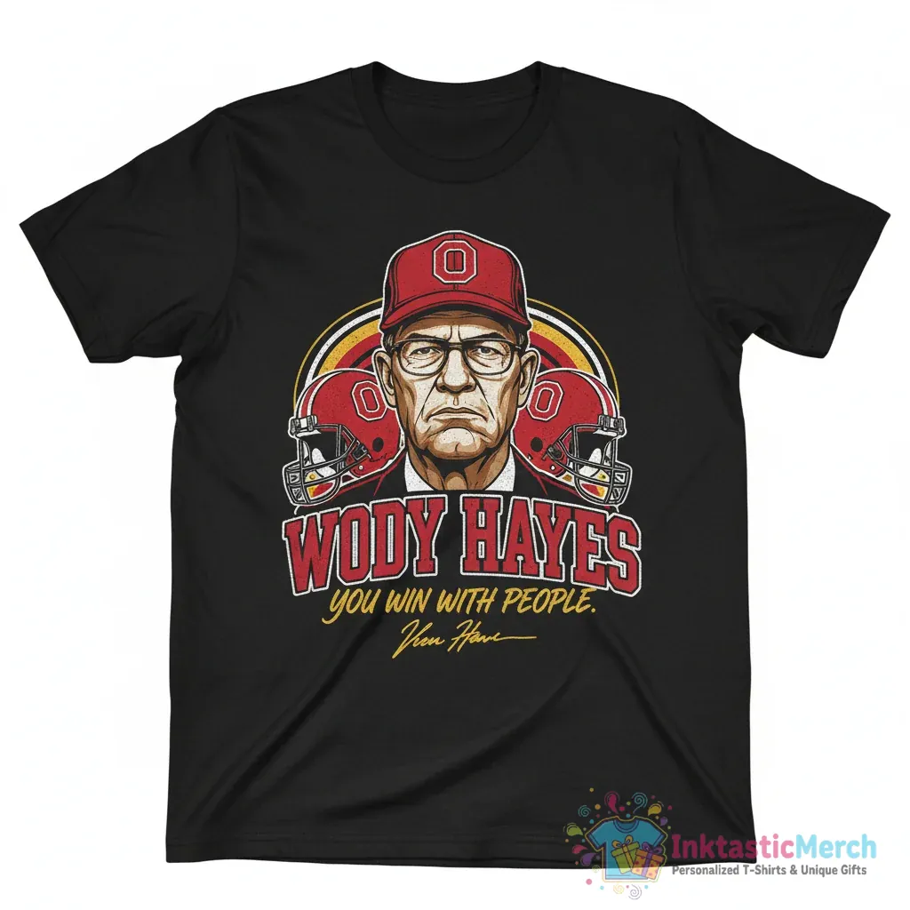 Bring your style to life with the Ohio State Buckeyes football Woody Hayes you win with people signature shirt today!