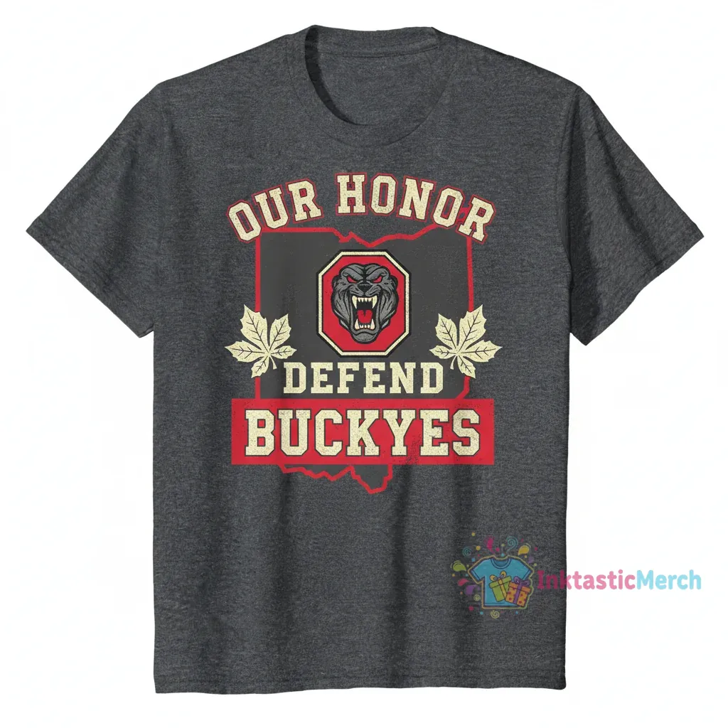 Show your unwavering support for the Ohio State Buckeyes with the officially licensed ‘Our Honor Defend’ T-Shirt, a must-have for any dedicated fan. This premium tee is designed for comfort and durability, making it perfect for game days, casual wear, or representing your team spirit year-round. Celebrate the legacy and passion of Ohio State with apparel that speaks volumes about your loyalty. This shirt encapsulates the spirit of ‘Our Honor Defend,’ embodying the relentless drive and pride of Buckeye Nation.