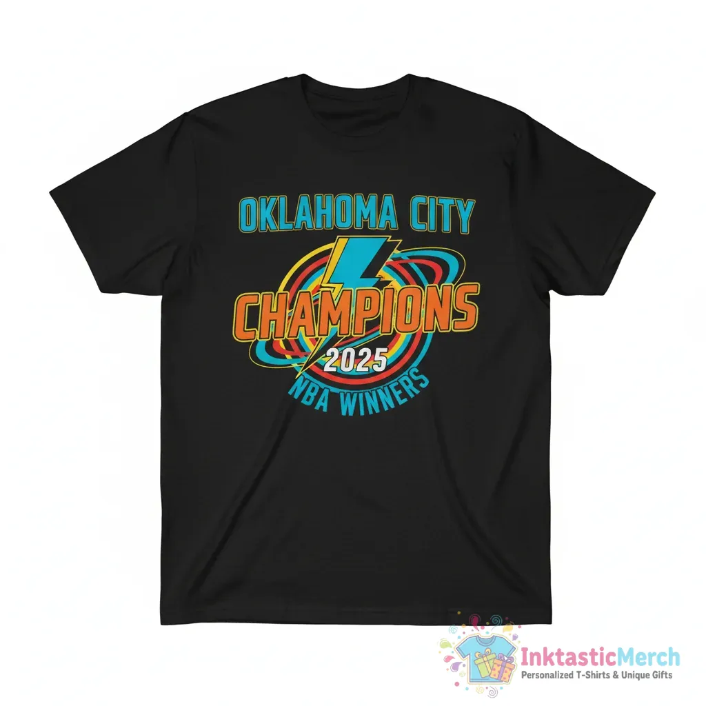 Bring your style to life with the Oklahoma City of Champions OKC Thunder NBA Basketball Winner 2025 shirt today!