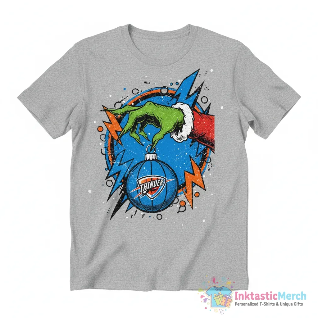 - Unique Design: Features a creative Grinch hand holding a Thunder-themed element, blending holiday fun with team pride.