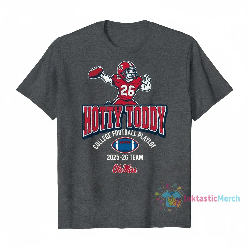 Show your Ole Miss pride with this “Hotty Toddy CFP 2025-26” slogan shirt, designed to capture the electrifying energy and unwavering spirit of Rebel Nation. Crafted with original artwork and a premium, buttery-soft fabric, this shirt offers exceptional comfort and a timeless design that embodies the passion of Ole Miss football. Explore more quality apparel from inktasticmerch.com, where style meets comfort for your daily journey.