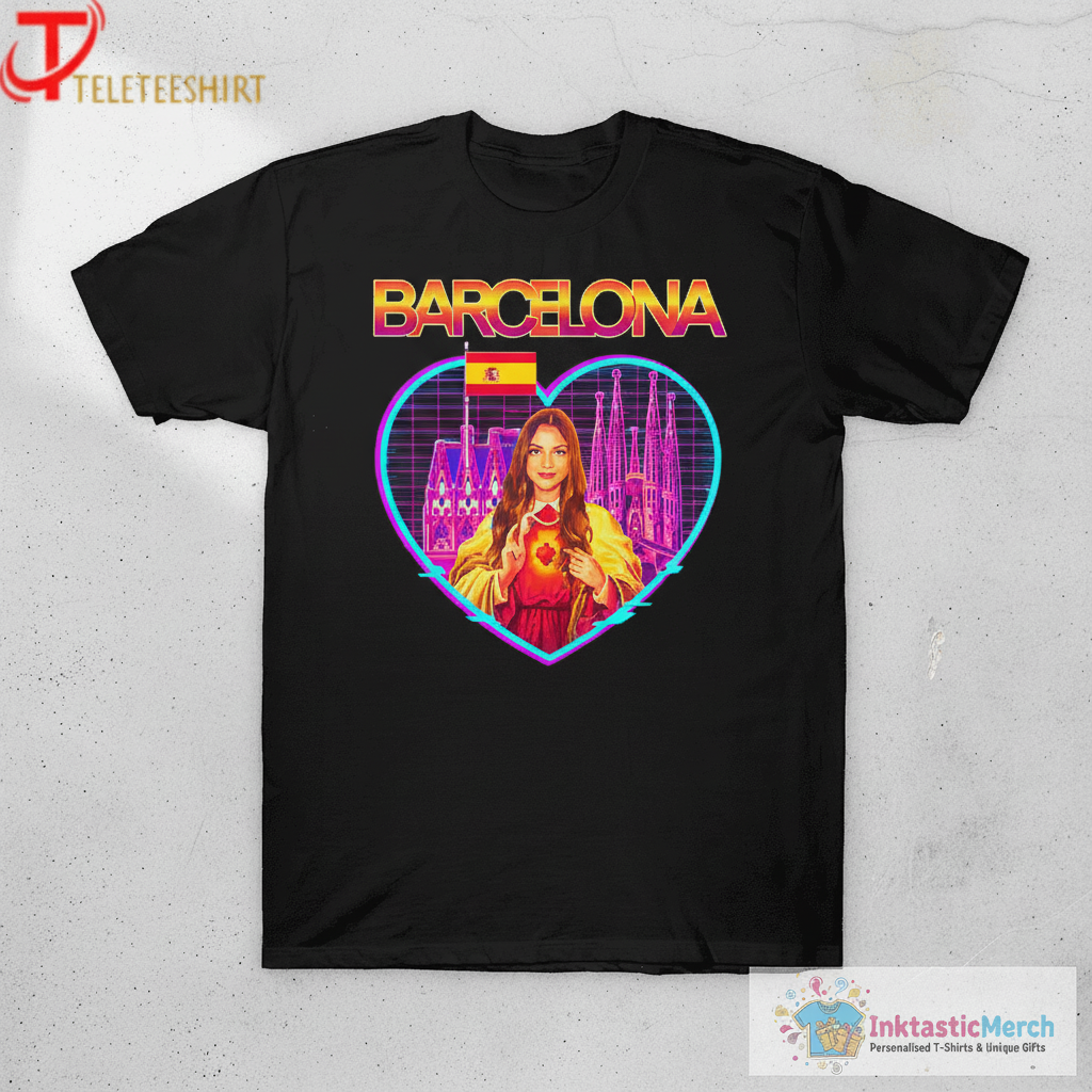 Bring your style to life with the Olivia Rodrigo Jesus Barcelona Heart Spain Flag Controversy Shirt today!