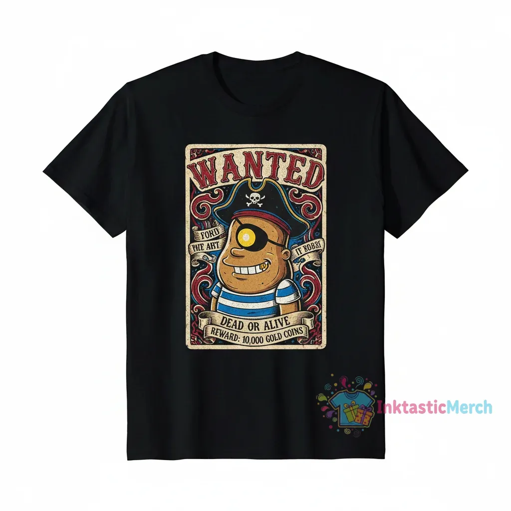 This T-shirt features a bold and intriguing design inspired by classic reward posters, reimagined with a unique, edgy twist. The central artwork of “one-eyed bart” draws you in with its stark visual impact and implied narrative. It’s more than just a print; it’s a statement piece that speaks to a rebellious spirit and a love for unconventional art. The style evokes a sense of mystery and defiance, making it a conversation starter for anyone who appreciates art that pushes boundaries. Wearing this shirt is like carrying a piece of underground culture, a visual story that resonates with individuality and a touch of danger.