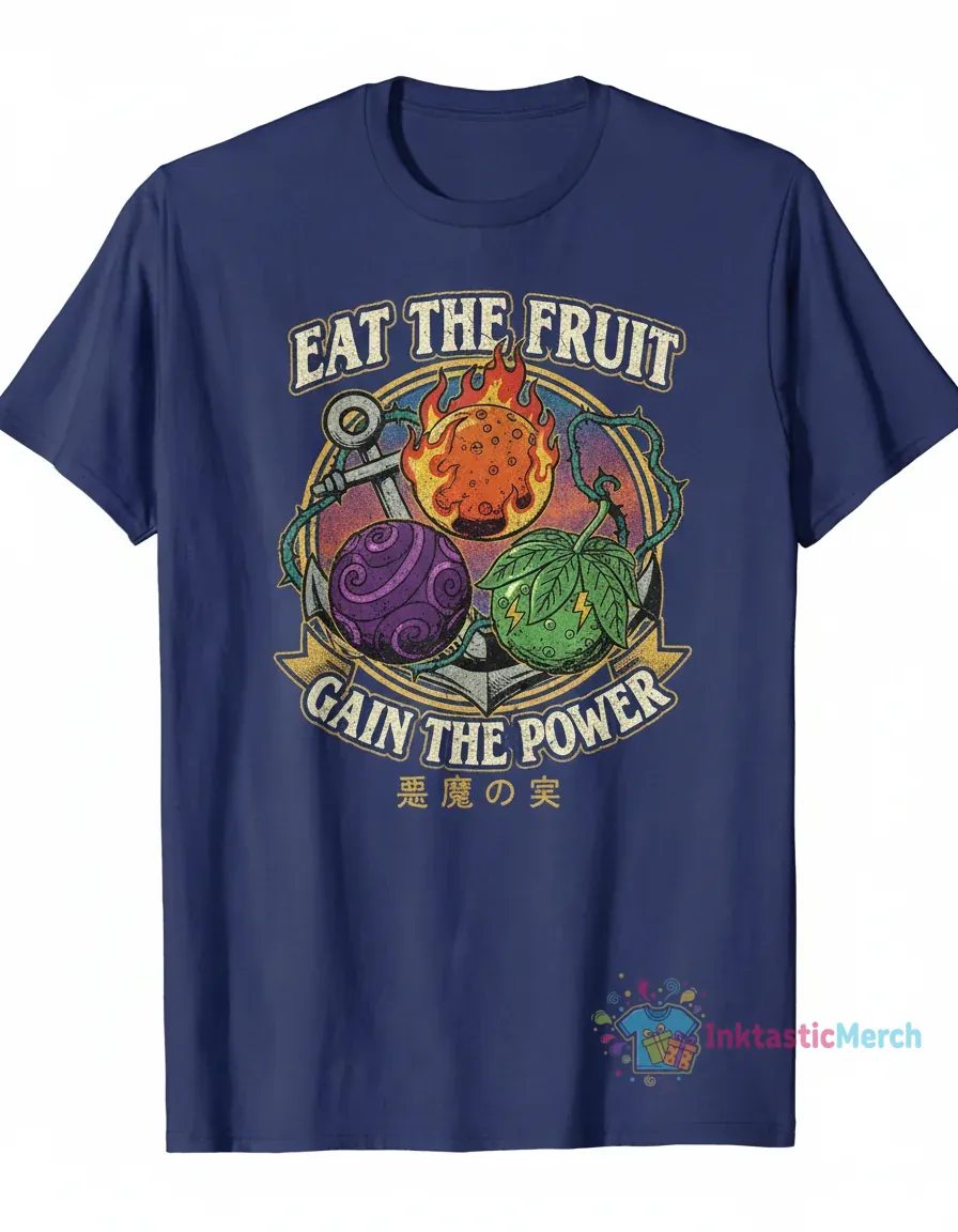 Discover the ultimate One Piece Devil Fruit Graphic Vintage T-Shirt from InktasticMerch, crafted for anime fans seeking a blend of nostalgic style and modern comfort. Made from 100% ring-spun cotton with a pre-shrunk, retail fit, this tee offers exceptional comfort and lasting wear with vibrant, durable Devil Fruit artwork.