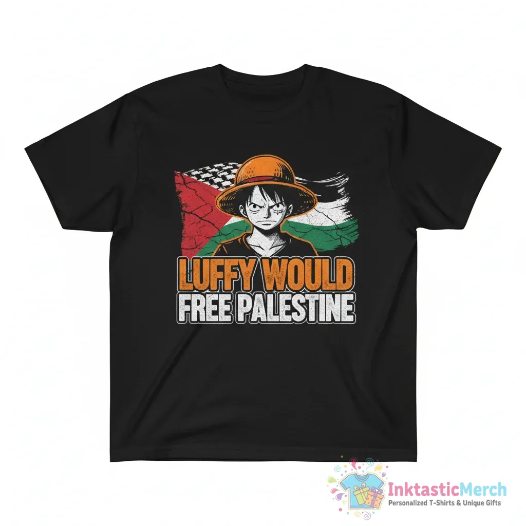 Show your support with the One Piece Luffy Would Free Palestine Shirt, a statement of solidarity crafted from top-tier materials for exceptional comfort and durability. This tee, featuring unique artwork of Luffy with a powerful message, is designed for fans who believe in freedom and justice, and lets you wear your values with pride. Discover more from InktasticMerch, where quality meets conviction in every garment.
