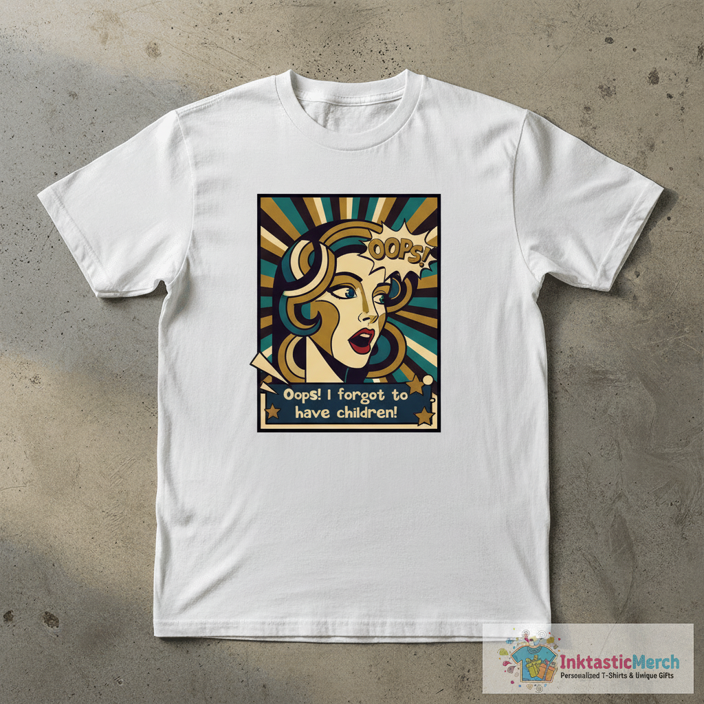 Make a statement with the “Oops! I Forgot to Have Children!” Funny Millennial T-Shirt from InktasticMerch. Crafted from high-quality, ultra-soft fabric, this durable tee offers maximum comfort for everyday wear, blending a witty, relatable slogan with a flattering unisex fit. It’s the perfect, conversation-starting piece for your casual wardrobe, designed to share a laugh and express your unique perspective.