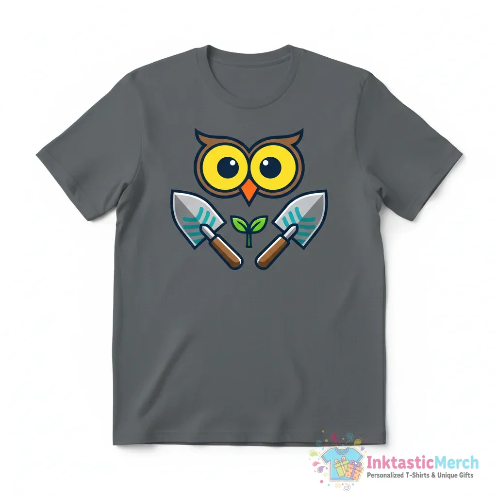 Show off your love for gardening and owls with the unique Owl Trowel T-shirt from InktasticMerch. Crafted for comfort and style using ultra-soft, high-quality fabric, this tee features eye-catching artwork that blends the charm of a wise owl with the essential tool of any gardener, making it a conversation starter and a must-have for nature enthusiasts.