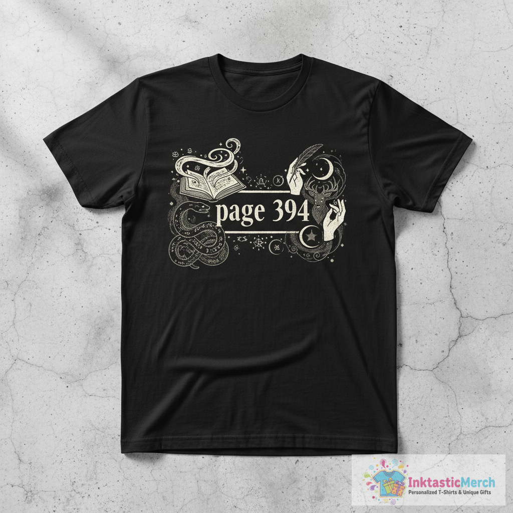 Experience a blend of comfort and style with the Page 394 Three Hundred Ninety Four T-Shirt. Designed for those who appreciate literary references, this t-shirt features a subtle nod to a beloved series. Its unique design is sure to spark conversation and make a statement wherever you go.