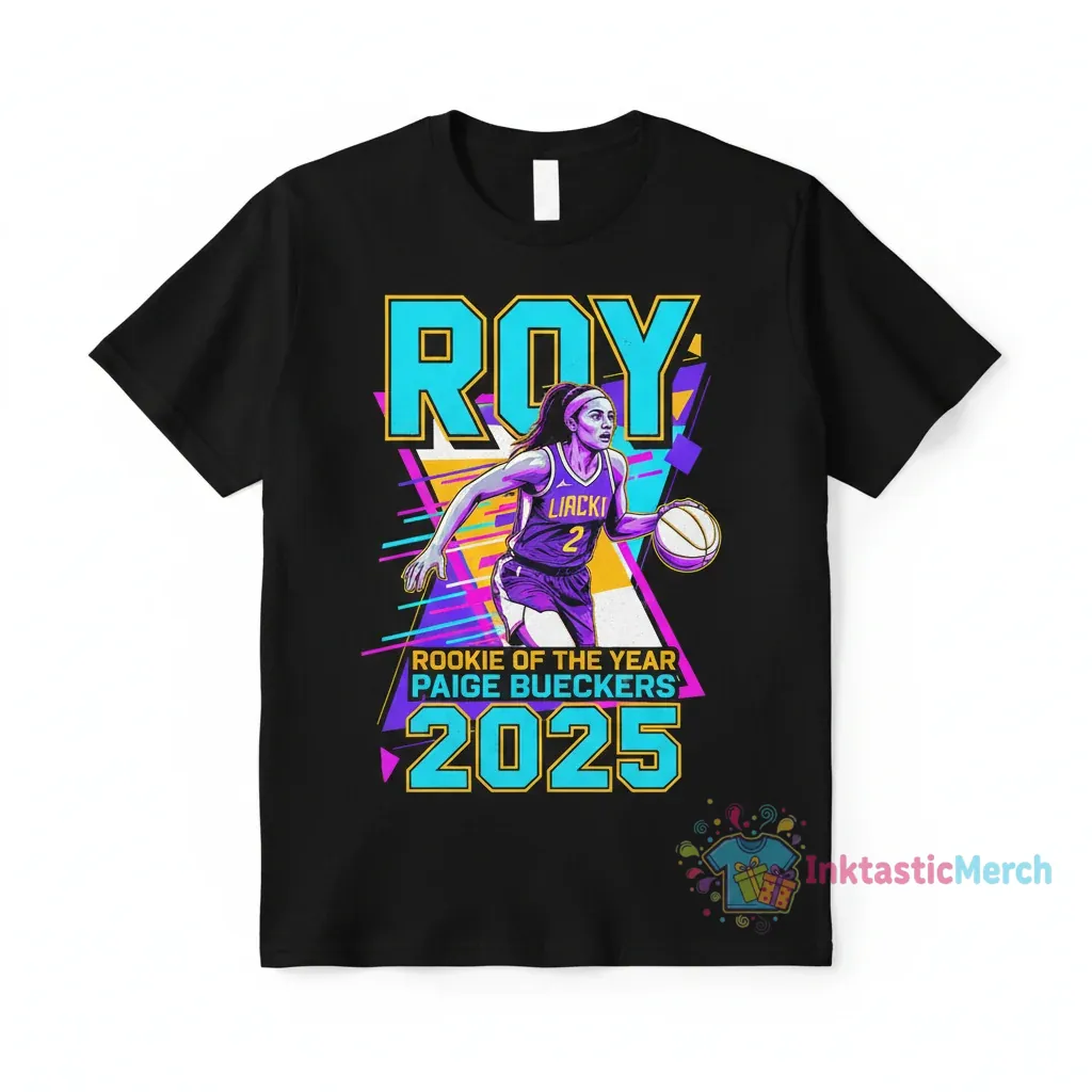 Celebrate the incredible achievements of Paige Bueckers with this exclusive Rookie of the Year 2025 t-shirt! If you’re a devoted fan, you know the frustration of a shirt that quickly loses its appeal. Say goodbye to flimsy fabric and faded designs. This shirt is meticulously crafted to be a lasting tribute to Paige’s game-changing talent, ensuring you can proudly showcase your support season after season. Don’t just wear a t-shirt; wear a statement of excellence and join the legion of fans celebrating a true basketball icon.