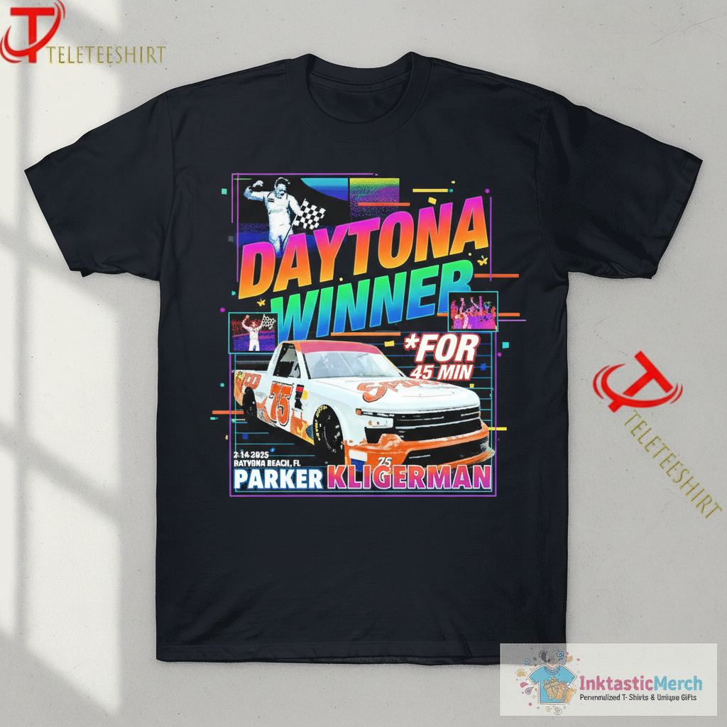 Bring your style to life with the Parker Kligerman For 45 Min 2025 Daytona Truck Race Win T-shirts today!