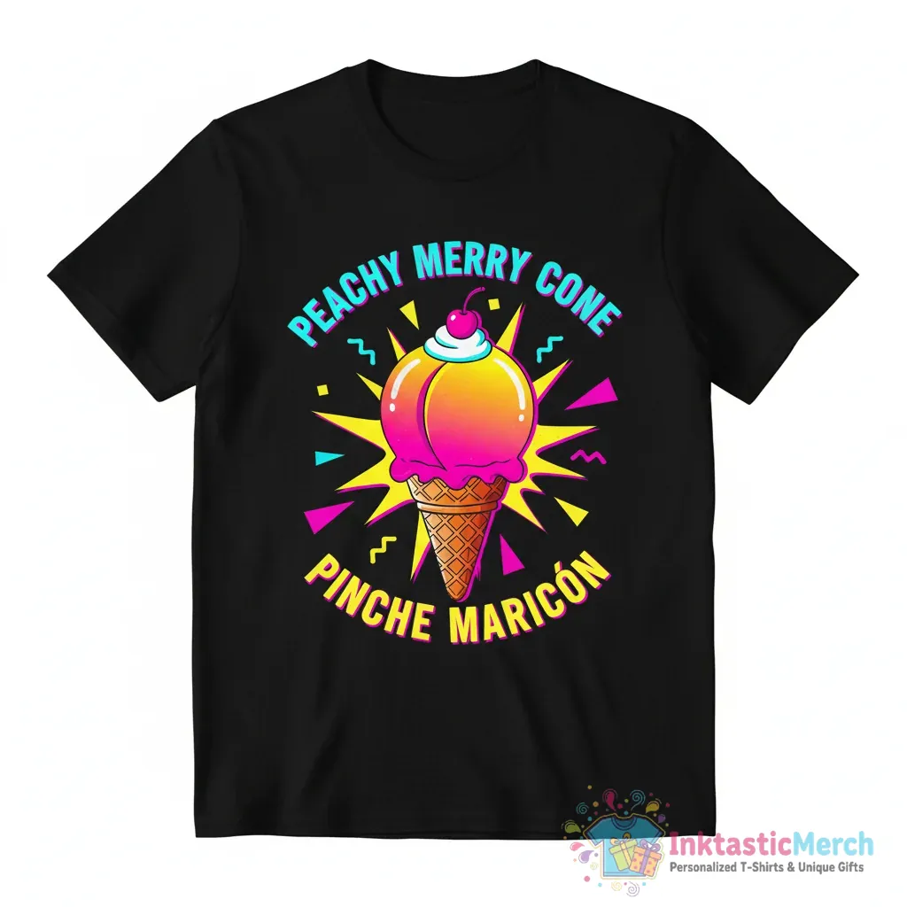Show off your unique style with the Peachy Merry Cone t-shirt. This tee features eye-catching artwork that’s sure to turn heads. Made for ultimate comfort, it’s the perfect addition to any casual outfit. Whether you’re hanging out with friends or running errands, this shirt brings a fun and playful vibe to your day. Get ready to feel great and look amazing in this standout piece.