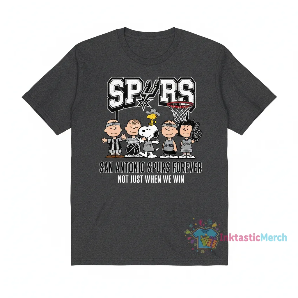 Show your unwavering San Antonio Spurs pride with the exclusive Peanuts x NBA “Forever Not Just When We Win” T-Shirt, a unique blend of nostalgia and athletic passion. Engineered for maximum comfort from premium, pre-shrunk cotton, this tee ensures a perfect fit wash after wash, offering the ultimate comfort for dedicated Spurs fans. Discover more at inktasticmerch.com.