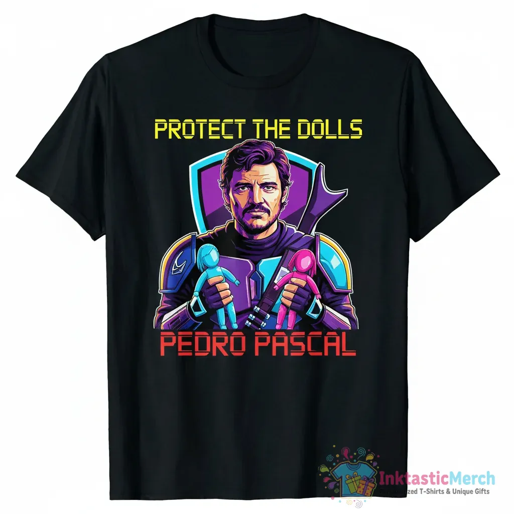 Show your love for Pedro Pascal with the premium quality Pedro Pascal Protect The Dolls shirt from inktasticmerch.com. This statement piece is designed for ultimate comfort and style, featuring a unique graphic that captures the essence of the beloved actor’s charm, making it perfect for expressing your fandom.