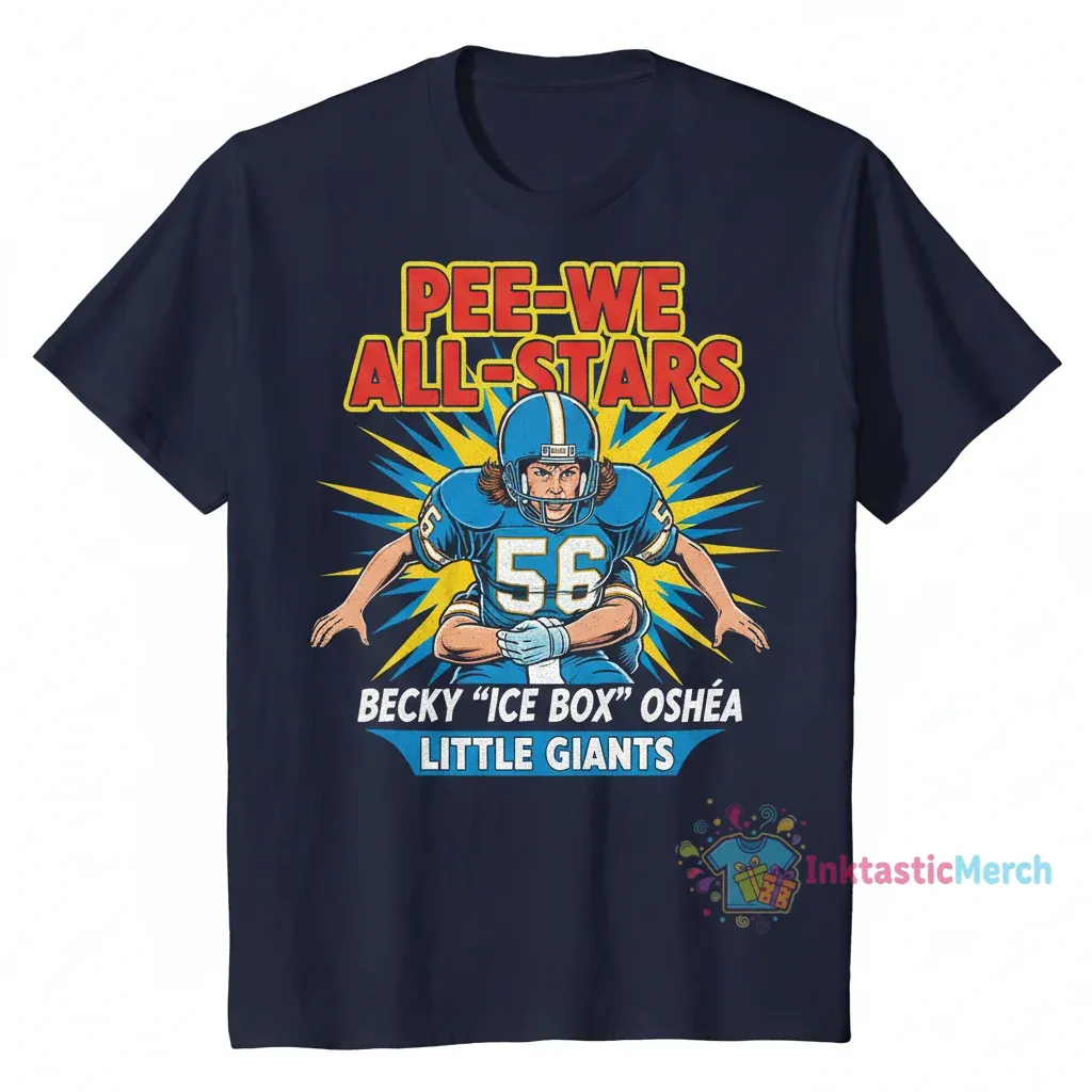 Show your love for a true football classic with the awesome Pee-Wee All-Star Becky Icebox O’Shea Little Giants shirt! Made with super-soft fabric for ultimate comfort and built to last with high-quality construction, this tee is perfect for fans who appreciate the humor and heart of the Little Giants. Explore more amazing finds that capture the spirit of beloved movies and pop culture at inktasticmerch.com.