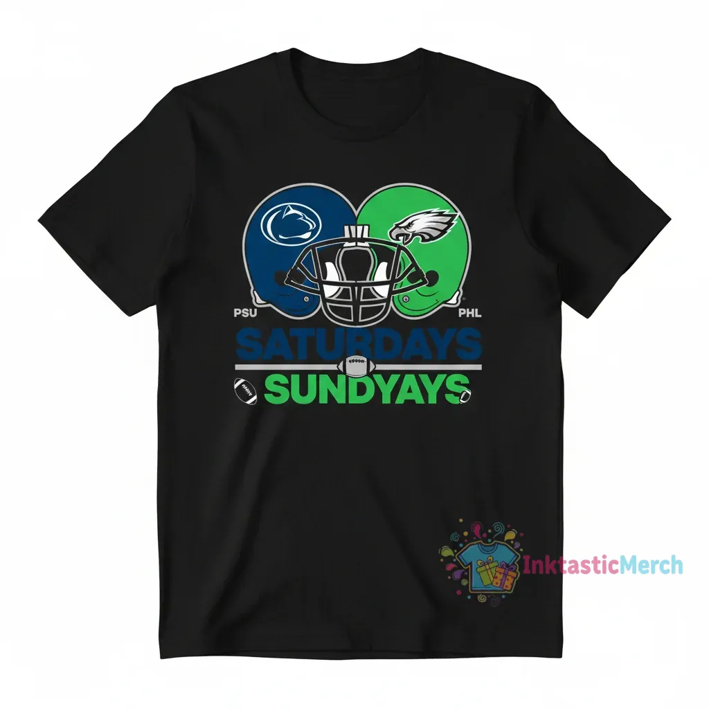 Show your unwavering team spirit with the Penn State Nittany Lions on Saturdays and Philadelphia Eagles on Sunday shirt, designed for comfort and style. Made with high-quality, comfortable fabric and a durable print, this tee is perfect for any game day or casual outing, letting everyone know where your loyalties lie. Visit inktasticmerch.com to celebrate your dedication to both your college and professional teams.