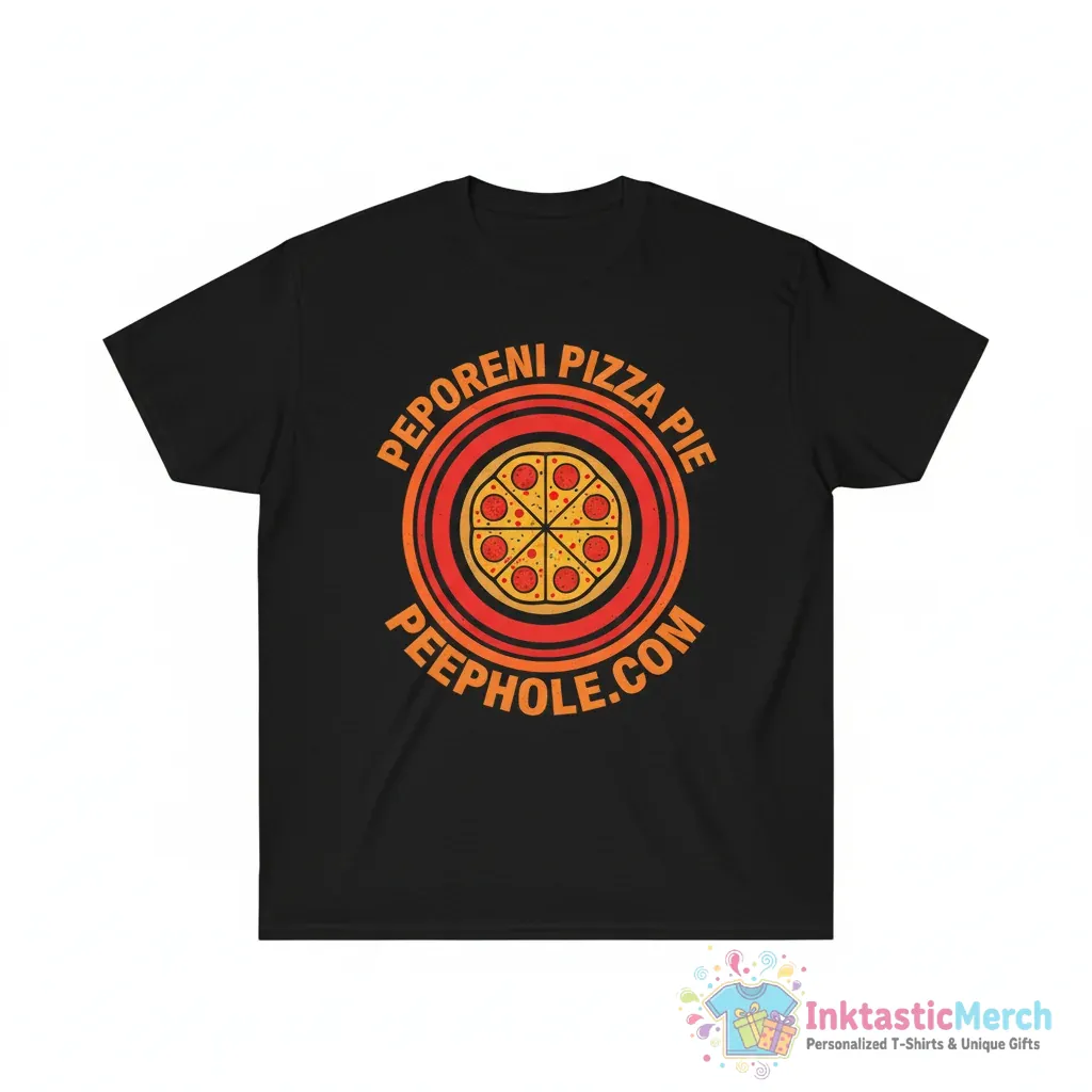 - Unique “Pepperoni Pizza Pie Peephole Dot Com” graphic design