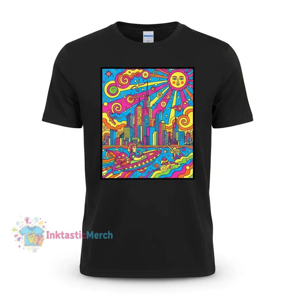 Embrace vibrant style with the Peter Max Artwork Series T-Shirt, a statement piece blending iconic art with lasting quality. Crafted from premium heavyweight cotton, this classic black tee offers superior feel and durability, ensuring it remains a wardrobe favorite. Discover more fusion of art and fashion from <a href="InktasticMerch“>InktasticMerch.