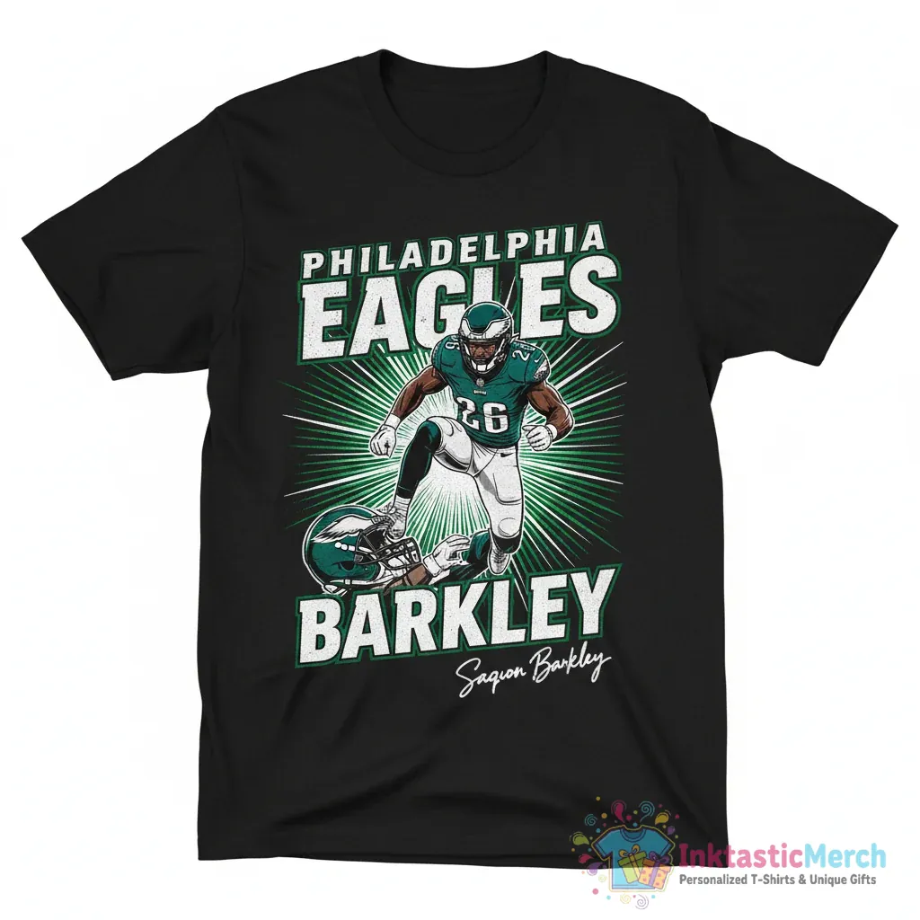 Show your love for Philly’s newest star with the Philadelphia Eagles Saquon Barkley Hurdle shirt from InktasticMerch. This premium tee celebrates Saquon Barkley’s electrifying presence on the field with a unique design capturing his signature hurdle. Crafted from incredibly soft, high-quality fabric, this shirt offers ultimate comfort and durable wear, making it a must-have for any dedicated Eagles fan.