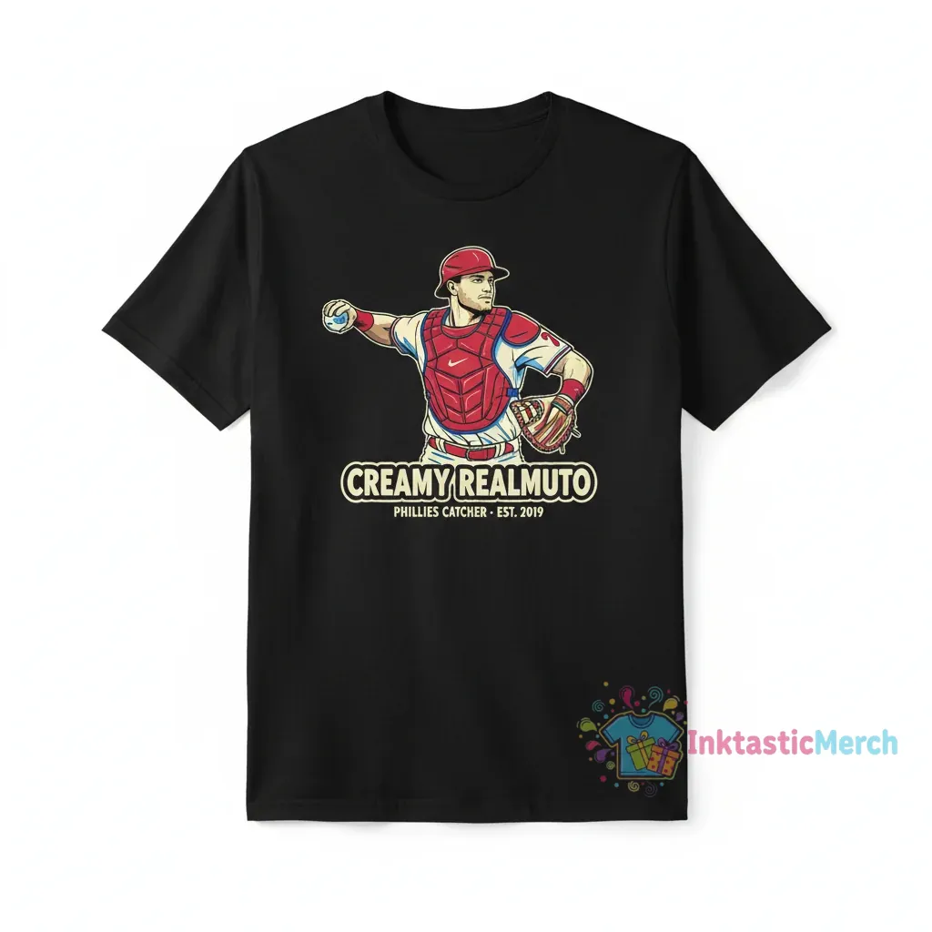 Show your unwavering support for the Philadelphia Phillies and J.T. Realmuto with this ultimate fan apparel. This ‘Creamy Realmuto’ shirt is designed for the true baseball enthusiast, capturing the spirit of the game and your favorite catcher, built to last and designed to turn heads. Discover more premium graphic tees at InktasticMerch, engineered for maximum comfort with 100% premium pre-shrunk cotton and vibrant, eco-friendly, fade-resistant inks.